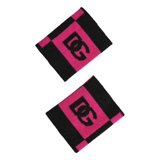 Dolce & Gabbana Black Pink DG Logo Cashmere 1 Pair Wristband