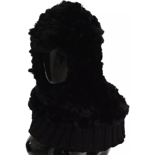 Dolce & Gabbana Black Silver Fox Fur Cashmere Hooded Scarf