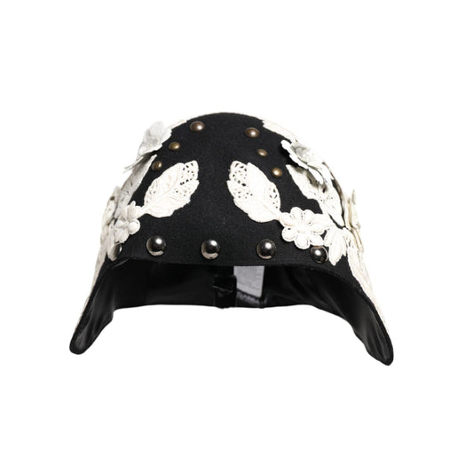 Dolce & Gabbana Black Wool White Floral Gold Leaf Hat