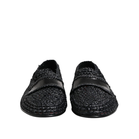 Dolce & Gabbana Black Woven Raffia Slip On Loafers Men Shoes