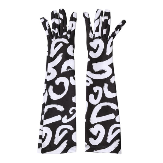Dolce & Gabbana Black White DG Logo Elbow Length Mitten Gloves
