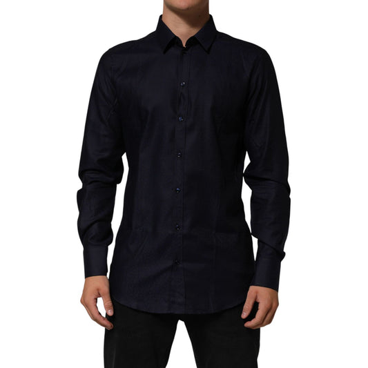 Dolce & Gabbana Blue Cotton Collared Long Sleeve GOLD Men Dress Shirt