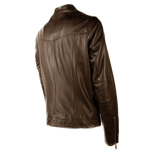 Emilio Romanelli Brown Leather Men Jacket