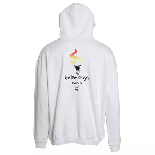 Balenciaga White Cotton Logo Hooded Pullover Sweatshirt Sweater