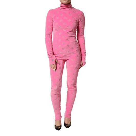 Dolce & Gabbana Pink Logo Monogram Long Sleeve Jumpsuit Dress
