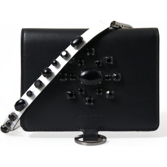 Dolce & Gabbana Black White Leather Crystal Embellished Cardholder Wallet