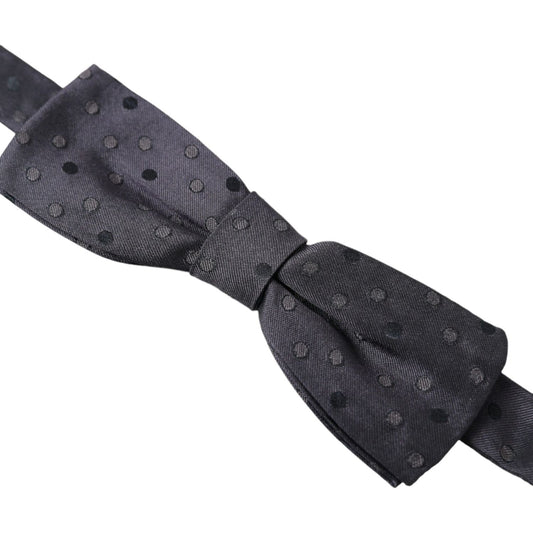Dolce & Gabbana Blue Gray Polka Dot 100% Silk Neck Papillon Tie