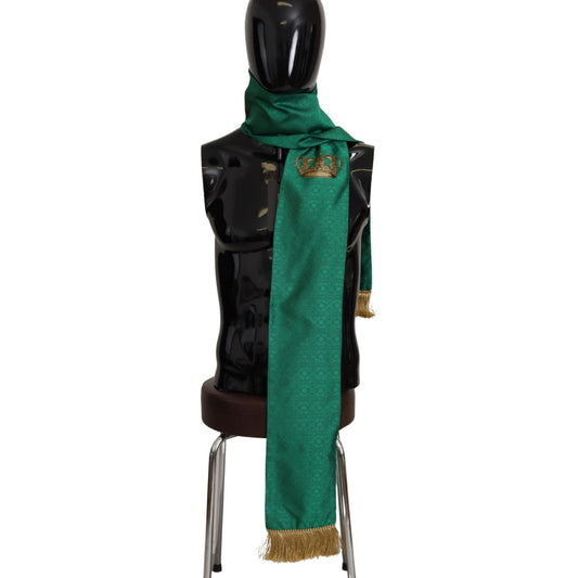 Dolce & Gabbana Green Crown Embroidered Shawl Fringe Blend Silk