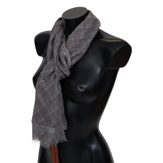 Missoni Gray Plaid Wool Unisex Neck Wrap Scarf