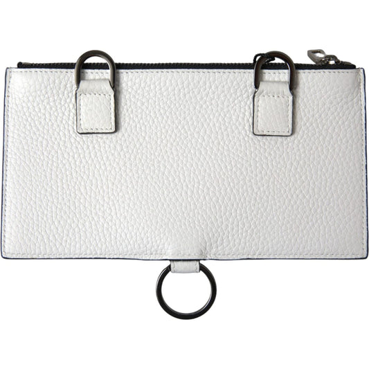 Dolce & Gabbana White Calf Leather Lanyard Logo Card Holder Wallet