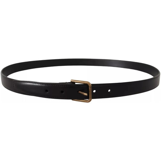 Dolce & Gabbana Black Calf Leather Gold Metal Buckle Belt