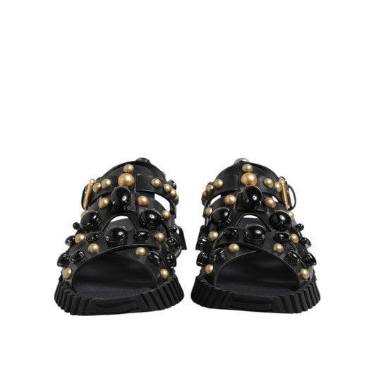 Dolce & Gabbana Black Leather Studded Slides Sandals Shoes