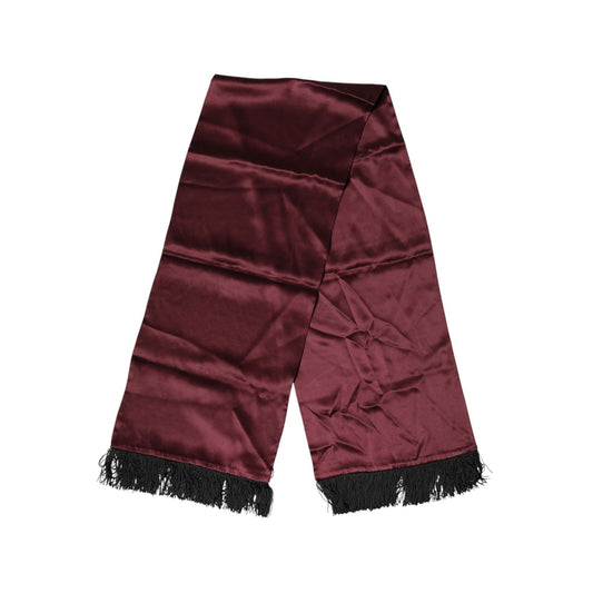 Dolce & Gabbana Maroon Silk Satin Fringes Neck Foulard Scarf