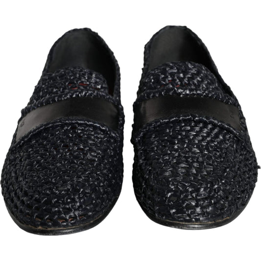 Dolce & Gabbana Black Woven Leather Slip On Loafers Shoes