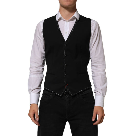 Dolce & Gabbana Black Wool Dress Formal Men Waistcoat Vest