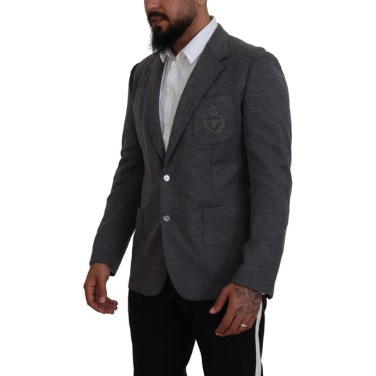 Dolce & Gabbana Gray Wool Stretch Slim Fit Jacket Blazer