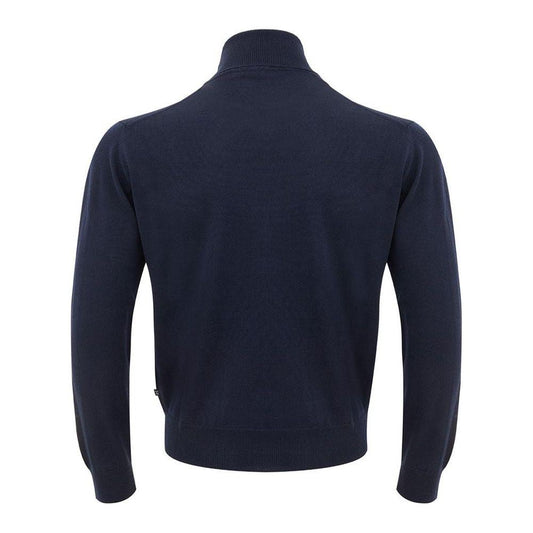 La Martina Blue Wool Men Sweater with Half Zip Closure