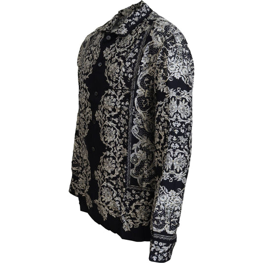 Dolce & Gabbana Blue Silk Floral Baroque Satin Casual Shirt