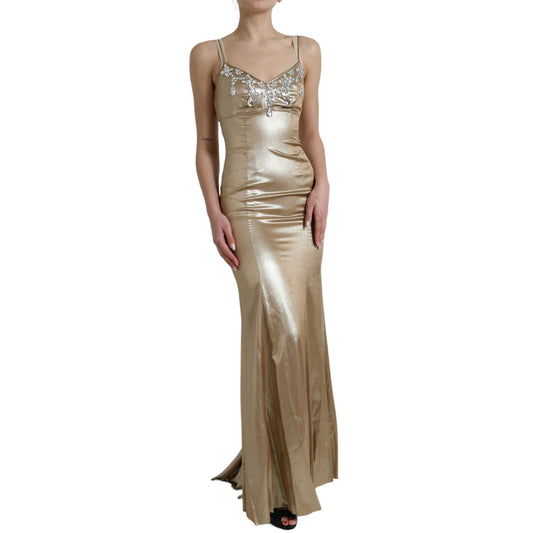 Dolce & Gabbana Metallic Gold Crystal Embellished Gown Dress