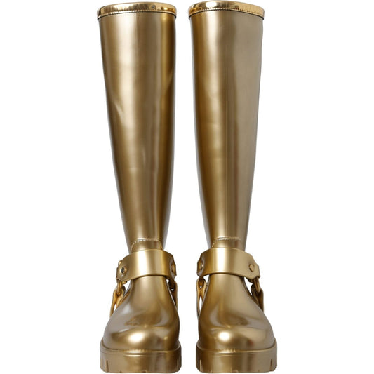 Dolce & Gabbana Metallic Gold Rubber PVC Rain Boots Shoes