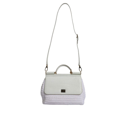 Dolce & Gabbana White Rafia Leather Top Handle Crossbody Bag