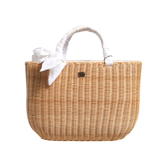 Dolce & Gabbana Beige Fiber Vegetable Basket Handbag Tote Bag