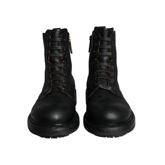 Dolce & Gabbana Black Lace Up Mid Calf Boots Men Shoes