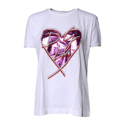 Dolce & Gabbana White Printed Round Neck Top Cotton T-shirt