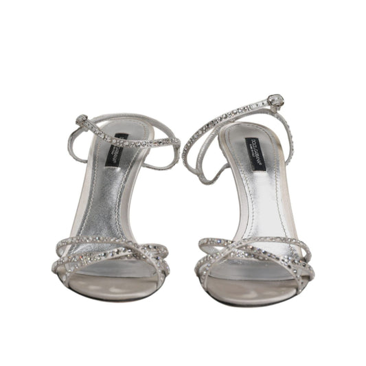 Dolce & Gabbana Silver Crystal Ankle Strap Sandals Shoes