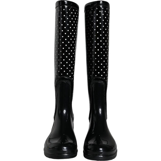 Dolce & Gabbana Black Polka Dot Rubber Knee High Boots Shoes