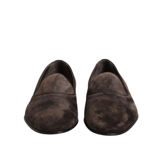 Dolce & Gabbana Brown Velvet Leather Slip On Loafers Shoes
