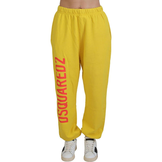 Dsquared² Yellow Mid Waist Logo Print Jogger Trouser Pants