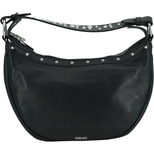 Versace Elegant Black Leather Hobo Shoulder Bag