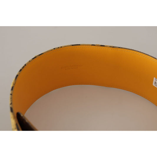 Dolce & Gabbana Blue Leather Jacquard Embossed Gold Metal Buckle Belt