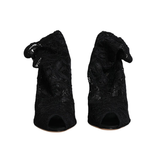 Dolce & Gabbana Black Stretch Taormina Lace Boots Shoes