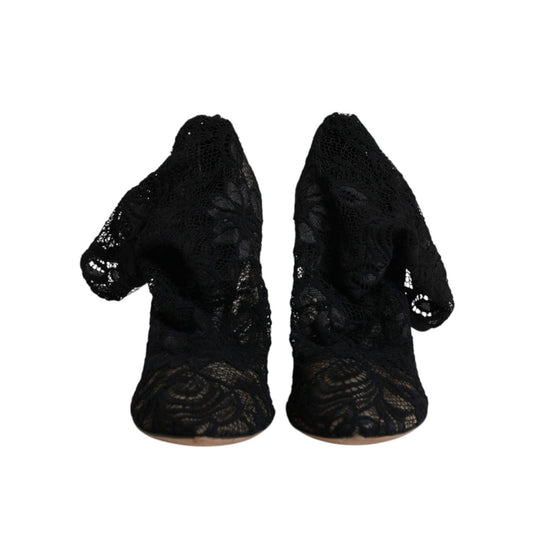 Dolce & Gabbana Black Stretch Pumps Boots Floral Lace Shoes