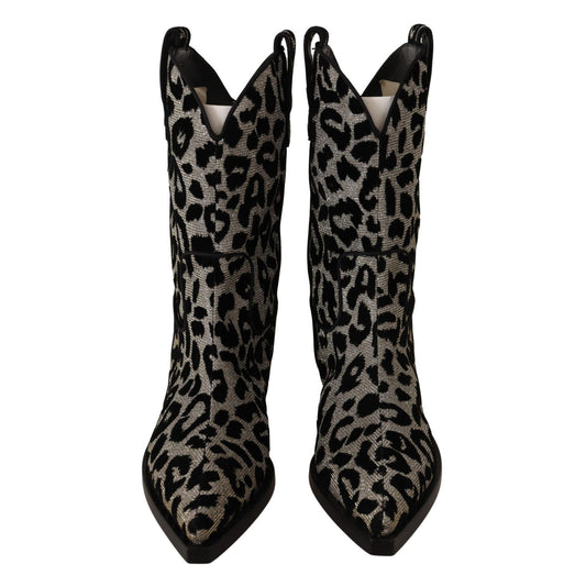 Dolce & Gabbana Gray Black Leopard Cowboy Boots Shoes