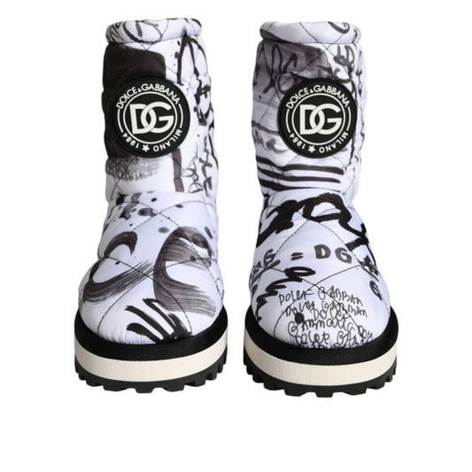 Dolce & Gabbana White Padded Logo Print Mid Calf Boots Shoes