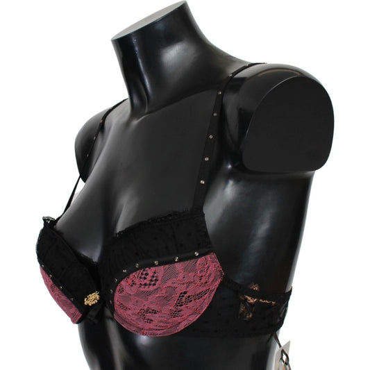 Roberto Cavalli Black Pink Lace Push Up Bra Underwear