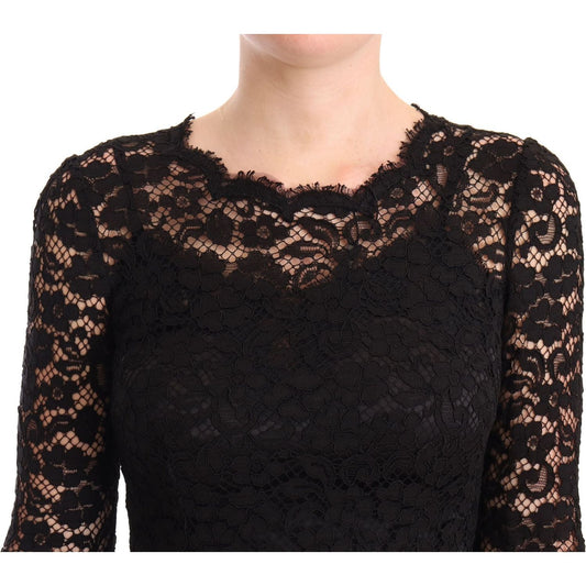 Dolce & Gabbana Black Cotton Lace Mermaid Long Sleeves Dress