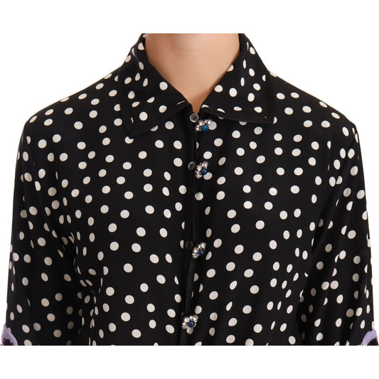 Dolce & Gabbana Black White Crystal Sequined Floral Dress