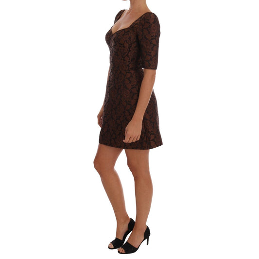 Dolce & Gabbana Black Brown Floral Brocade A-Line Dress