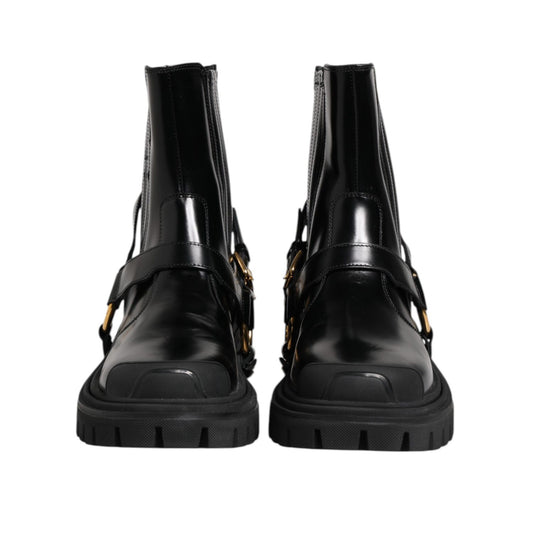 Dolce & Gabbana Black Calfskin DG Logo Strap Ankle Boots Shoes