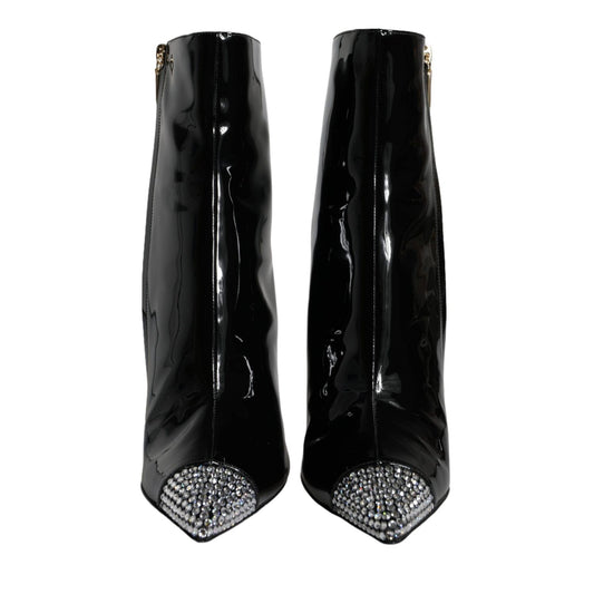 Dolce & Gabbana Black Patent Leather Crystal Heel Boots Shoes