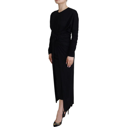 Dolce & Gabbana Black Sheath Midi Gown Wool Wrap Dress