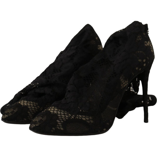 Dolce & Gabbana Black Stretch Socks Taormina Lace Boots Shoes