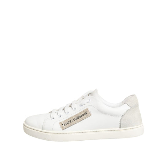 Dolce & Gabbana White Gray Leather Low Top Sneakers Shoes