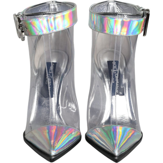 Dolce & Gabbana Silver Iridescent PVC Pointed Short Boots Shoes