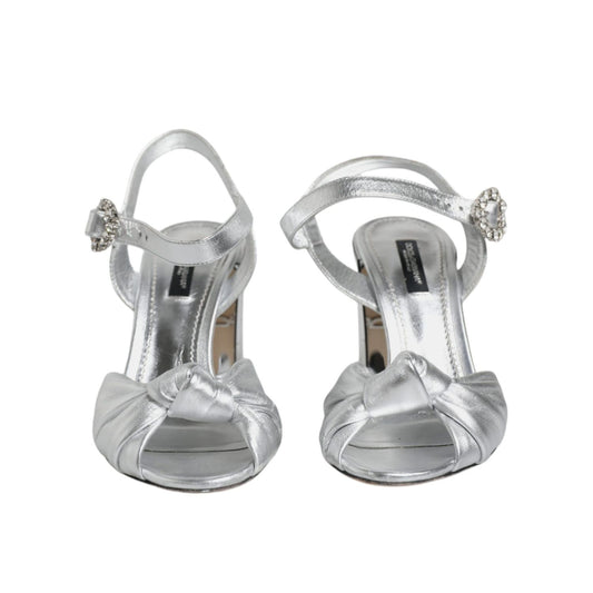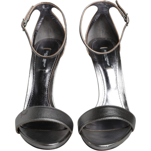 Dolce & Gabbana Silver Keira Leather Heels Sandals Shoes