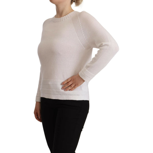Dolce & Gabbana White Wool Knit Crew Neck Pullover Sweater